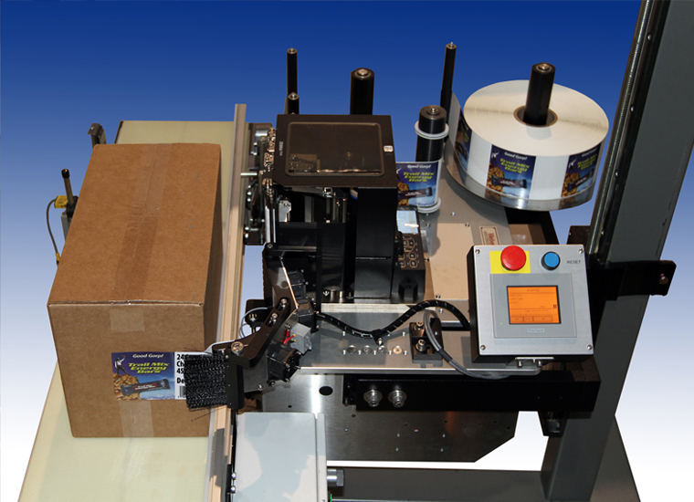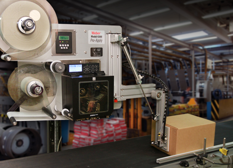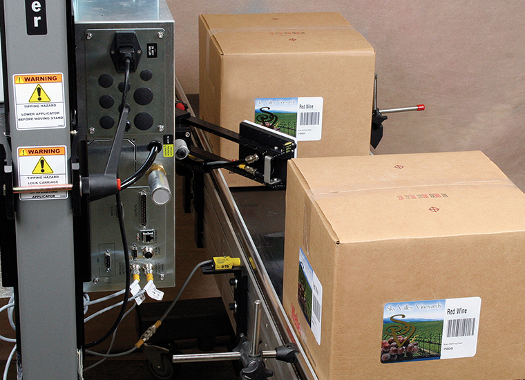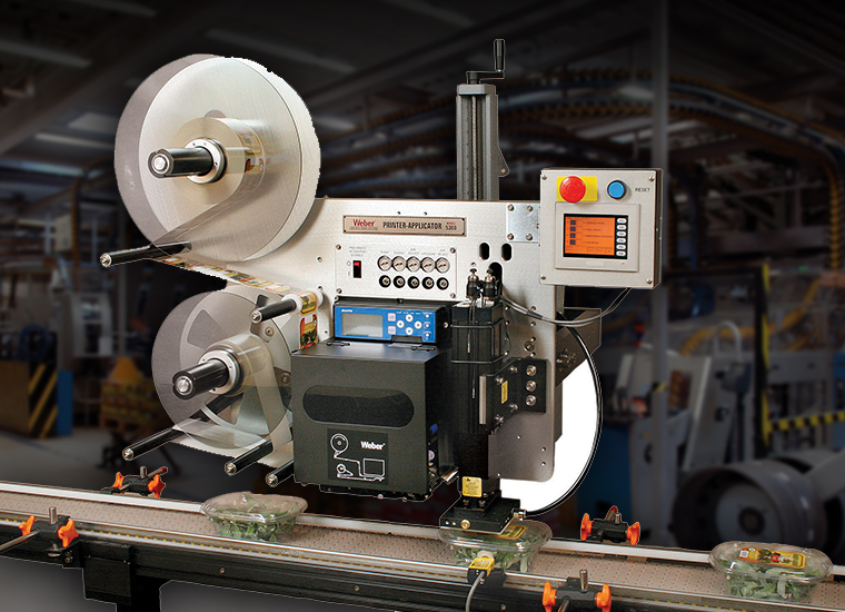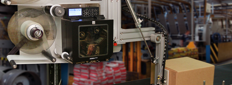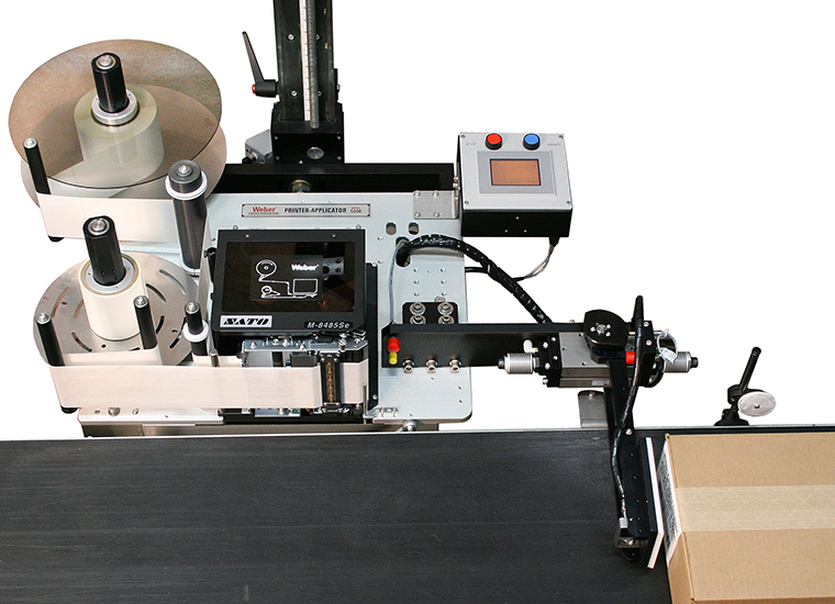 - Utiliza un método de aplicación de la etiqueta con un brazo giratorio. La etiqueta se desprende automáticamente de su papel protector y es retenida por el vacío en el brazo aplicador.