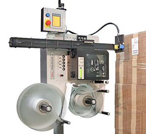 - Utiliza un cilindro de tamp extendido para etiquetar un lado del pallet.